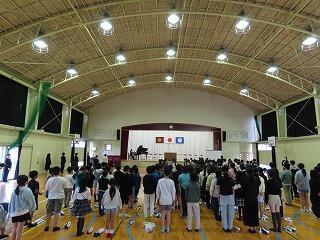 式が終われば当然、片付けがあります。片付けの時間には、5年生も体育館にやってきて、その時を待っていました。