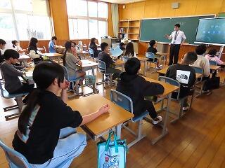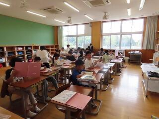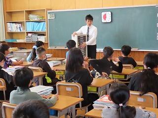 6年2組では、外国語専科の先生と行う外国語の授業が行われていました。(外国語専科の先生は、南小の在籍で、南小の児童の指導に加え、本校と東小の6年生の授業を担当してくださいます。)