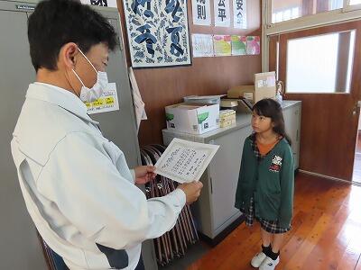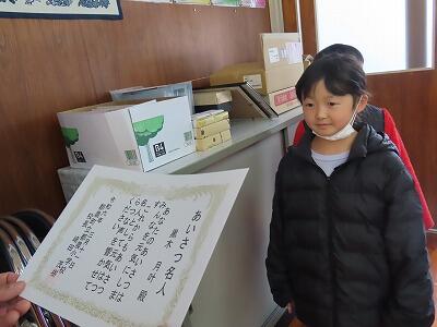 では、その都農小あいさつを引っ張ってくれているあいさつ名人の表彰です!(たくさんのあいさつ名人が誕生しています。)