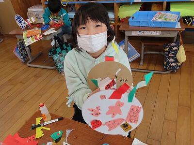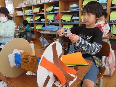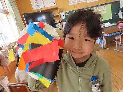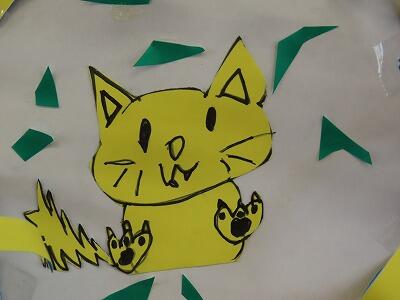 【楽しい作品が勢揃い。とってもカラフルで、教室が明るくなりました。では・・】