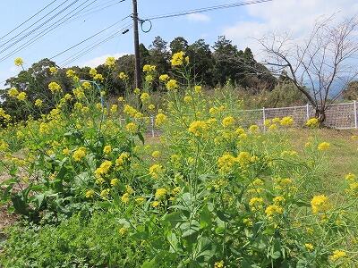 【ほころびはじめている花も。笑うそして、プール横の菜の花は・・】