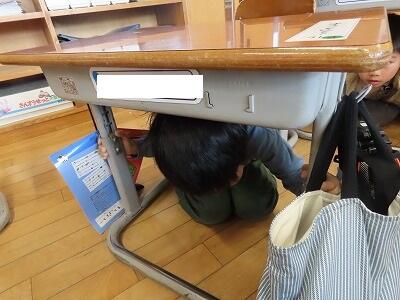 【カメさんのポーズでをしっかり守り、机の脚をしっかり握ります。】