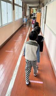 【朝の活動の時間には避難経路の確認を行いました】