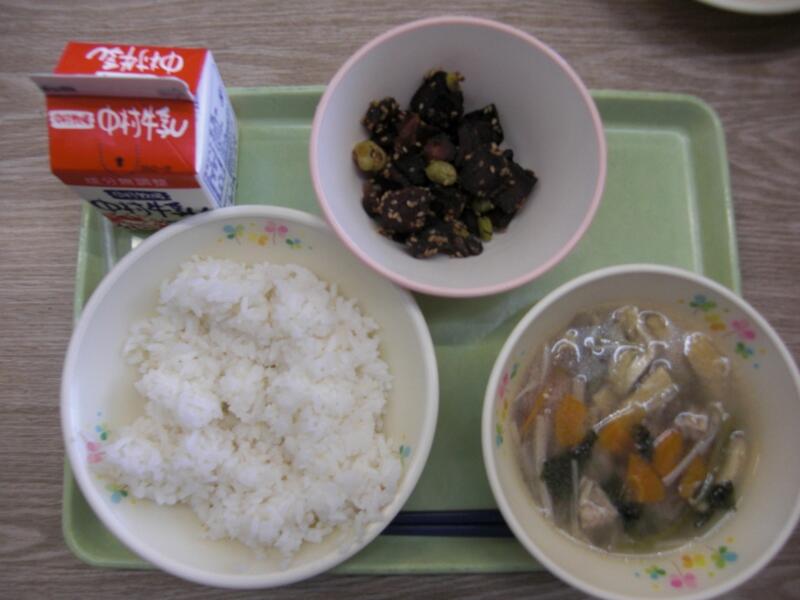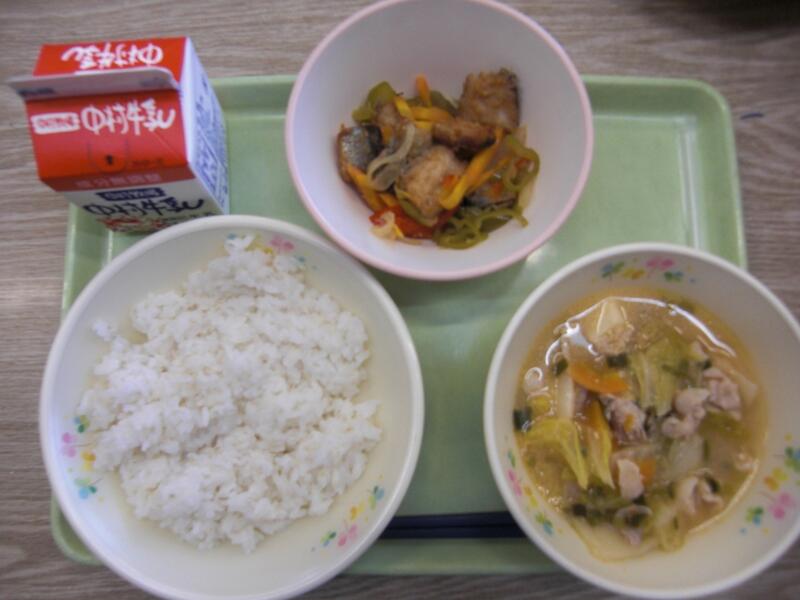 この日の小さいおかずは、揚げたかつおをレモン風味の調味料で和えた『かつおの香り和え』でした。毎月、共同調理場から出されている『給食だより』に、作り方が紹介されていますので、ぜひ、ご家庭でも作ってみてはいかがでしょうか。