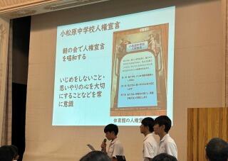 本校の代表児童は、各校の取組を発表を真剣な表情で聞いていました。