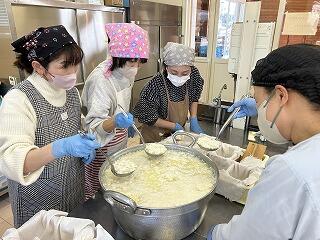 それぞれの工程の間にちょっとした隙間時間ができると、調理台の片付けが始まり、使用した調理道具を洗い、次々と片付けていかれます。先を見通した無駄のないてきぱきとした動きに思わず見とれてしまいました。段取りを考えながら、日々の家事を行っておられるのだなと思いました。