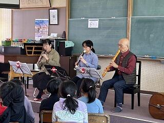 リコーダーアンサンブルの演奏の前には、リコーダーの紹介などもあり、子どもたちもこれまでの学習をふり返りながら音楽を聴いていました。