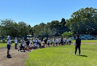 選手の皆さんは、子どもたち一人一人に明るく元気な声であいさつをしてくださいました。