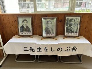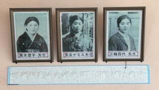 児童用玄関には、三先生の写真が飾られています。