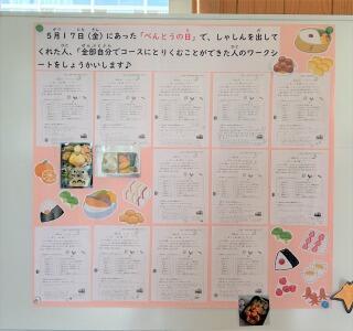 今回は、お弁当の日に作ったお弁当の写真と「全部自分でコース」に取り組んだ人たちのワークシートが紹介されていました。