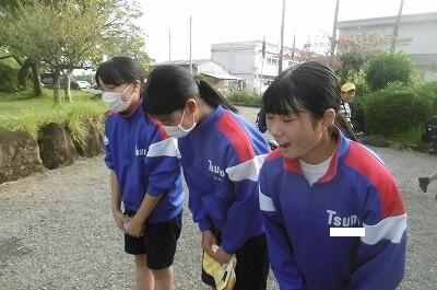 運動会の練習で疲れていても、相手の目を見て、気持ちの良いあいさつを続けている4人を選びました。