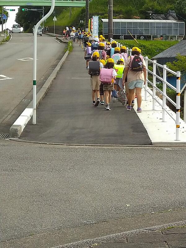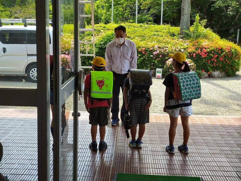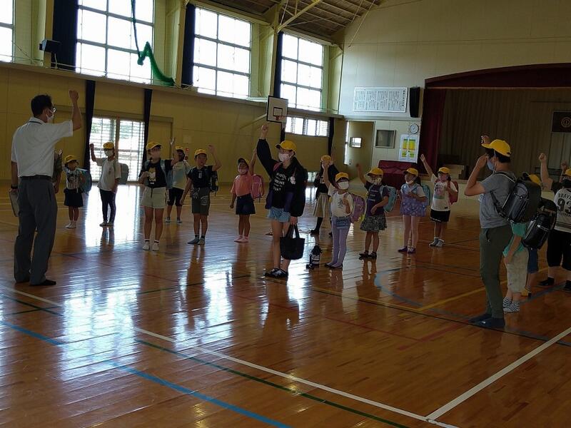 ※写真は児童数が最も多いクラスの先生の出発の様子です。