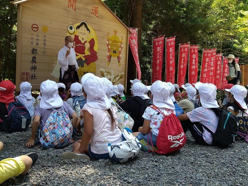 まず午前中は、宮崎県総合博物館です。恐竜の全身骨格模型や宮崎県にしか生息しない植物、期間限定の神楽の展示など、数々の展示品に子どもたちは魅了されていました。博物館の職員の方からも多くのことを教えていただき、大変勉強になりました。