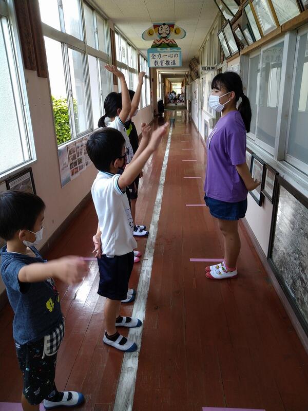 9月の目標は「右一静歩を守ろう」です。以前からコロナウイルスの予防のために、廊下は間隔を空けて歩くようにしています。落ち着いた冷静な行動が、ケガや命を守ることにつながります。この9月も引き続き、コロナウイルスや熱中症の予防につながる行動を心がけていきましょう。