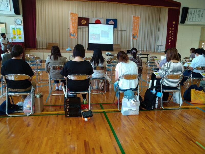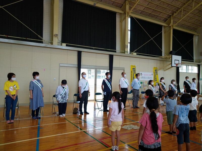 その後、家庭教育学級開級式を体育館で実施。蒸し暑い中、子育てのスキルアップに向けて研修しました。町家庭教育応援団「さん・さん」の下、これからも手を取り合って頑張っていきましょう。