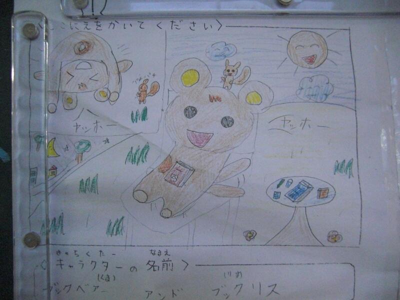このキャラクターは、これから先、図書室に関わる案内や図書室の中でのディスプレイ、図書委員会の子どもたちが作るしおりなど、図書室のマスコットキャラクターとして、様々なところに登場する予定です。図書室といったら、ブックベアーアンドブックリスというように、親しまれるキャラクターになっていってほしいですね。
