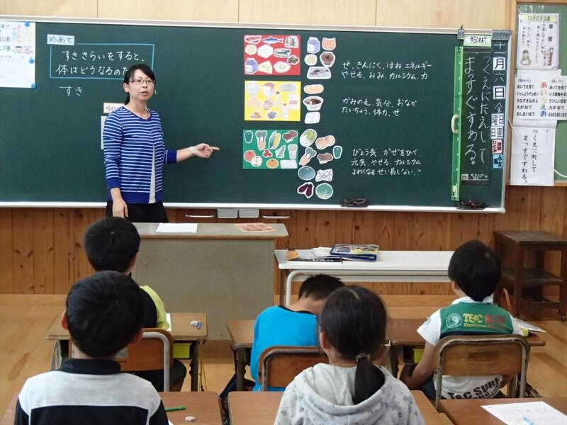 学級活動の時間に、共同調理場の宮原先生と食に関する授業を行いました。