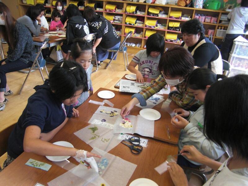 また、「押し花」の活動では、実際に押し花を作るために、運動場に出て、葉っぱや花、落ち葉などを拾いに行きました。自分たちで見つけた落ち葉などがどのようになるのか、とても楽しみな様子でした。