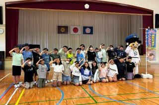 今日の6時間目に高鍋警察署の皆様や都農町長の坂田様、教育長の中西様に来校いただき、ハンドアップマイスター任命式を行いました。