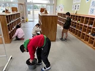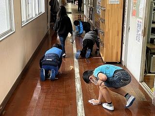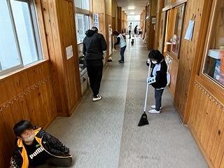 縦割り清掃に無言で取り組むおすずっ子です。黙々と清掃に取り組む姿に感心させられます。