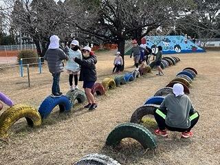 元気に遊ぶ「おすずっ子」気温がだんだん下がる中、多くの児童が、外で元気よく遊んでいました。