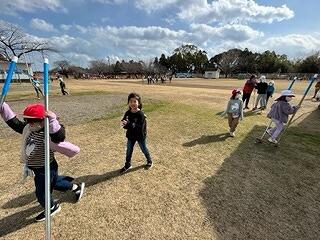 今日は、生活の時間に、たこあげをしました。風が弱かったようですが、上手に風をつかって上げる子や駆け足で走りながら上げることもできました。