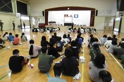 6年生とのお別れ集会を体育館で行いました。前半は、4年生の進行のもと各学年から6年生へ向けてのメッセージや歌のプレゼントやクイズ等で楽しく過ごしました。後半は、5年生の計画委員会が考えてくれた交流活動で、じゃんけんゲームや丸罰ゲームを楽しみました。お世話をしてくれた4年・5年の代表の皆さんありがとう。