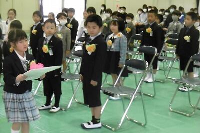 【ようこそ!都農小学校へ!新たに3名の児童がおすずっ子の仲間入りです!。堂々と自己紹介をする姿が印象的でした。】