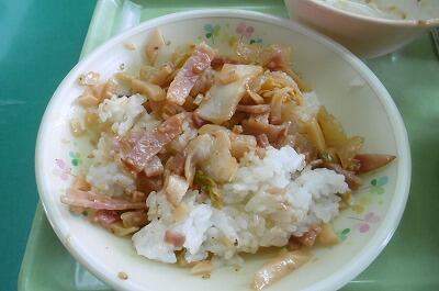 【キムタクご飯!キムチとたくあんを混ぜ合わせたご飯ですね・・。(ご飯との相性ぴったりで、おいしくいただきました!)】