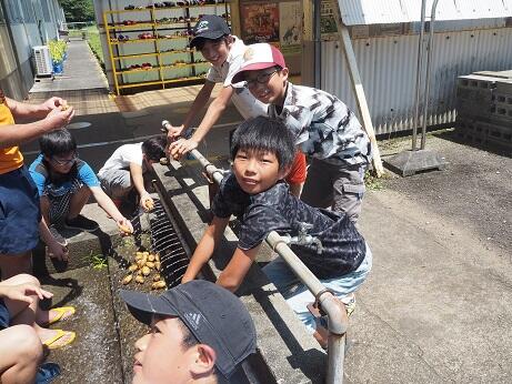 買い出し組とカレー作りの準備組に分かれて、活動開始です。ジャガイモは自分たちで育てたジャガイモです。きれいに洗いました。