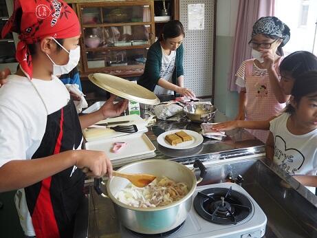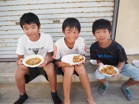 全員がそろって、カレー作り。おうちの方に手伝ってもらいながら、手際よく作ることができました。