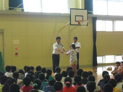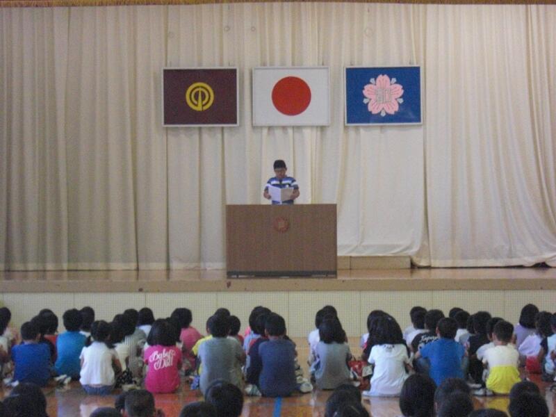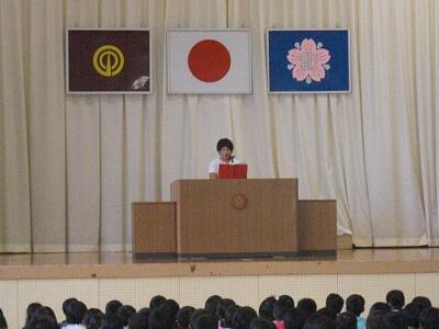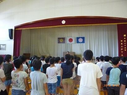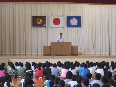 校長先生のお話では、校長先生の少年時代の体験話を踏まえ、「いろいろなことに挑戦したり、本をたくさん読んだりする夏休みにしましょう。」というお話がありました。