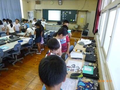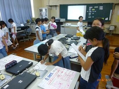 慣れないPCを使って、宮崎県を「土地」「交通」「海のめぐみ」「偉人」などの観点で調べ学習をしました。グループごとに調べたことがらから、それぞれの「宮崎県は○○な県である」とまとめています。