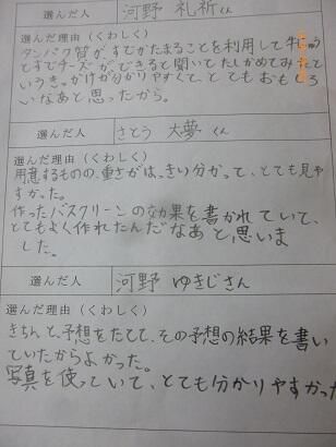 実験をとおして、結論を導き出すことができ満足げな5年生でした。