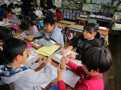 一人一個ずつじゃがいもを観察して名前を付けたりスケッチをしたりしてじゃがいもと友達になりました。じゃがいもにもいろいろなものがあるようにクラスの友達や地域の中にもいろいろな人がいることを理解し、お互いに助け合いながら生活することが「福祉」だというお話を聞きました。