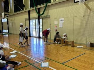 3時間目に体育館に行くと、3・4年生の子どもたちが新体力テストを行っていました。