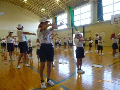 【まずは準備運動、6年生が教えてくれました】