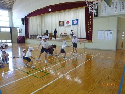 5月10日、木曜日。1年生ドキドキの初体力テストです。でも、大丈夫!たのもしい6年生が優しく補助してくれました。