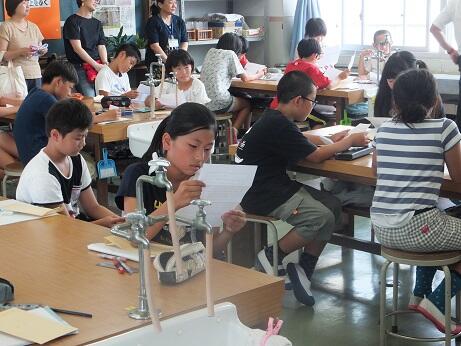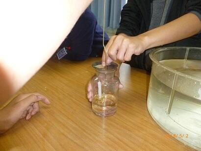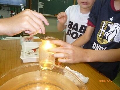 酸素に火をつけるという、これまででもっとも危険な実験でしたが、6年生は安全に気を付け、協力して実験を行うことができました。