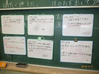 ということは、この地球上の大気(窒素80%、酸素20%、二酸化炭素0.04%)は、絶妙なバランスの上に成り立っている。このバランスがくずれたら・・・。と地球環境についても考えを深めた6年生でした。