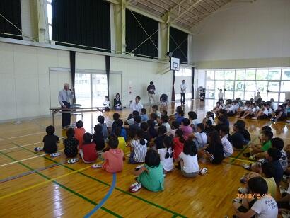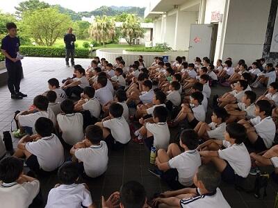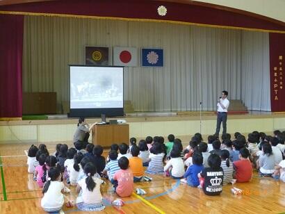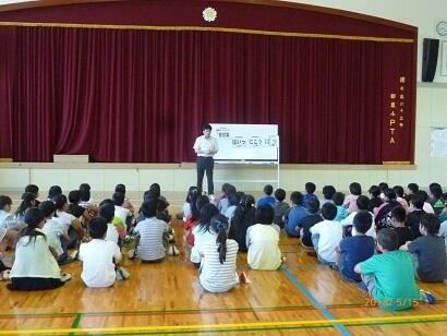 都農小学校では、平成18年に本校の児童が水難事故に遭い、命を失うという悲しい事故がありました。それ以降、月命日である22日を「命の日」として、命について考える時間を設定しています。「悲しい出来事を風化させてはいけない。」「命の尊さ・大切さについて、深く学び、自分の命をしっかり守ってほしい。」このような思いで、黒木成徳さんにお願いしたところ、快く引き受けていただき、この集会が実現しました。