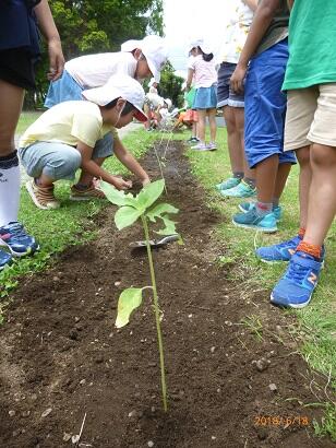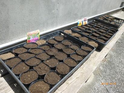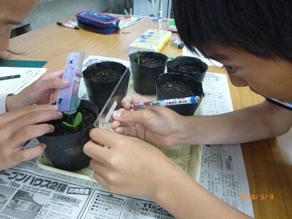 3年生が、「ホウセンカ」「マリーゴールド」「ヒマワリ」の種をまいたのが、5月10日(上の写真)のことでした。