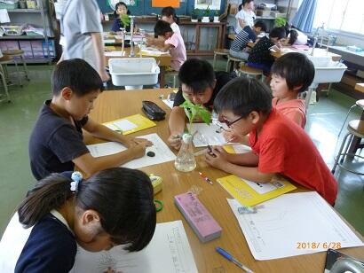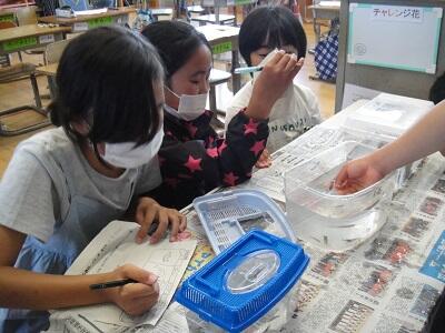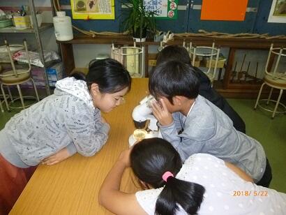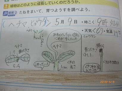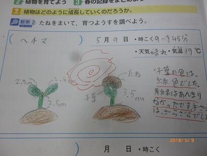 首を長くして待っていた4年生は大喜びです。早速今日(5/9)の理科の時間に観察し、ノートに記録していきました。