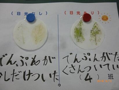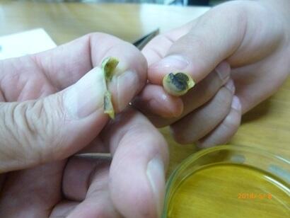 【種子はヨウ素液が青紫色に変わったが、子葉はほとんど変化無かった】