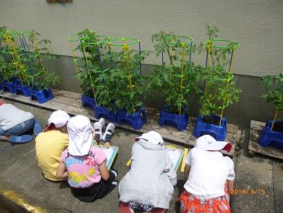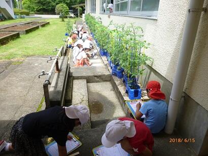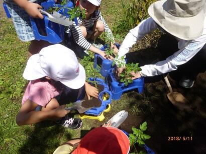 2年生は生活科で、ミニトマトの苗を鉢に植えていました。おいしいミニトマトがたくさんできるといいですね。
