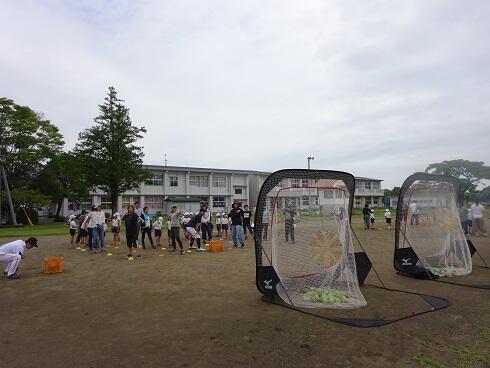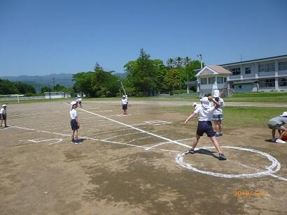 4年生は、体力テストで「ソフトボール投げ」を行っていました。