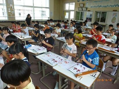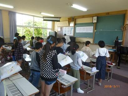 5年2組は、音楽の授業を谷山先生と行っていました。