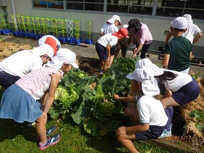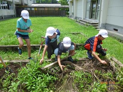【昼休み、暑い中収穫に参加した6年生です!】