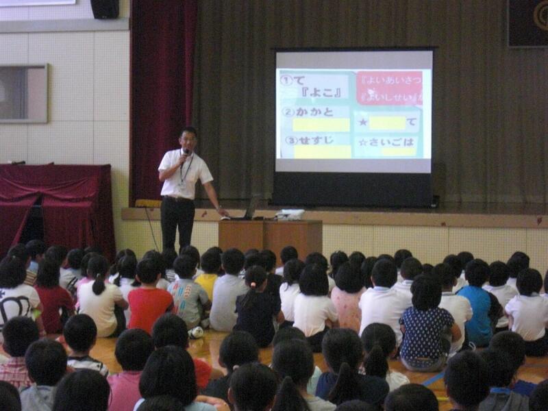 今月のあいさつ隊長は?(7月全校朝会にて)