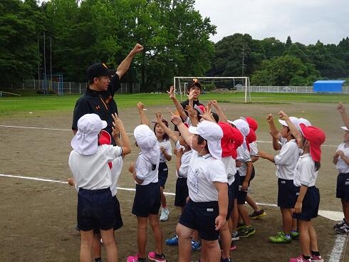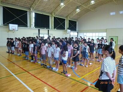 最後に、7月25日(水)に南小で行われる水泳記録会に向けて、応援の練習を行いました。